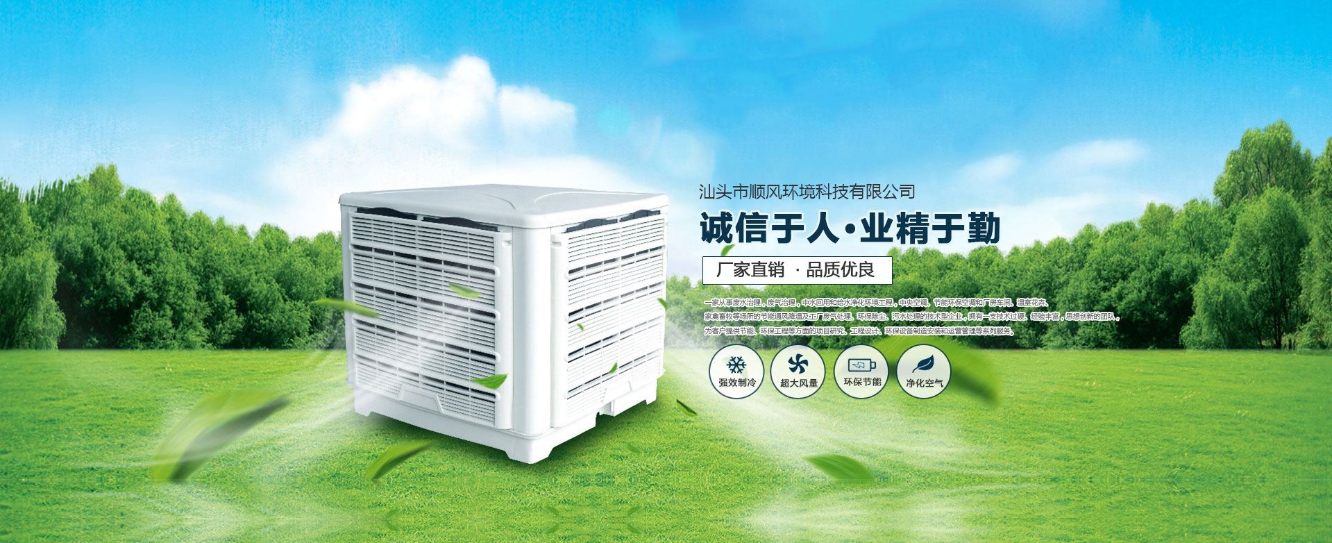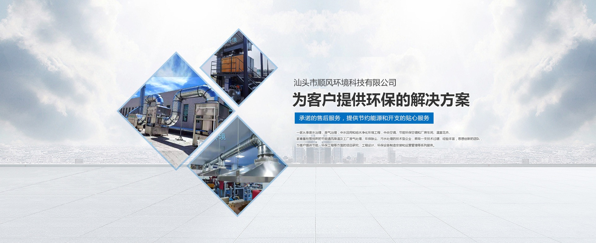 汕頭市順風環(huán)境科技有限公司,是一家專注從事廢水治理,廢氣治理,中水回用和給水凈化環(huán)境工程,中央空調、節(jié)能環(huán)保空調和廠房車間、溫室花卉、家禽畜牧等場所的節(jié)能通風降溫及工廠廢氣處理、環(huán)保除塵、污水處理的技術型企業(yè),擁有一支技術過硬、經(jīng)驗豐富,思想創(chuàng)新的團隊,為客戶提供節(jié)能、環(huán)保工程等方面的項目研究、工程設計、環(huán)保設備制造安裝和運營管理等系列服務。 多年來,公司堅持 “ 誠信于人,業(yè)精于勤” 的宗旨,憑借豐富的工作經(jīng)驗及雄厚的技術實力為多家大型公司、工廠、養(yǎng)殖、超市等大型綜合場所進行節(jié)能通風降溫及廢氣處理、污水處理等工程設計、安裝、維修、年度保養(yǎng),得到了顧客的一致好評并長期合作。